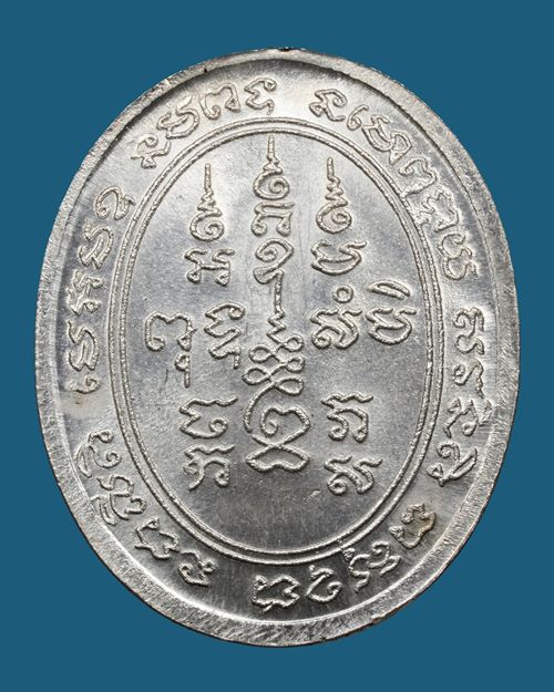 ด้านหลังเหรียญ มีเส้นรอบด้านนอก 1 เส้น รอบวงกลมด้านใน 2 เส้น ทั้งด้านนอกและด้านในมียันต์อักขระขอม เชื่อกันว่าเป็นยันต์ประจำตัวหลวงพ่อเจริญ ด้านในวงกลมจะมียันต์คำว่า "เทาะ" เป็นอักขระขอม รอบเหรียญเขียนเป็นอักขระขอมว่า "นะมะพะธะ นะโมพุทธายะ สะวะนิติ ทาสุอุชา นะชาลีติ เมอะมะอุ"