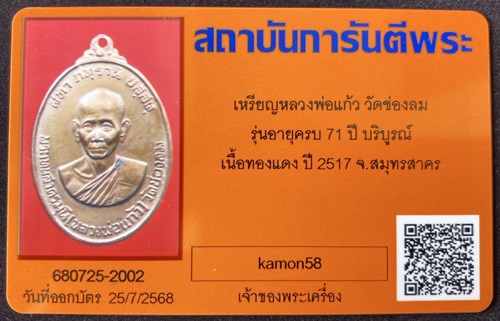 เหรียญหลวงพ่อแก้ว วัดช่องลม บล็อกนิยม รางรถไฟ เนื้อทองแดง ปี 2517 สภาพสวย มาพร้อมบัตรรับรองครับ