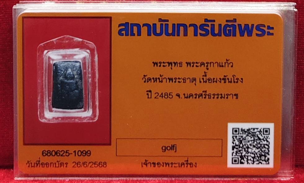 พระพุทธ พระครูกาแก้ว วัดหน้าพระธาตุ เนื้อผงชันโรง ปี 2485 จ.นครศรีธรรมราช สวยเดิมๆครับ