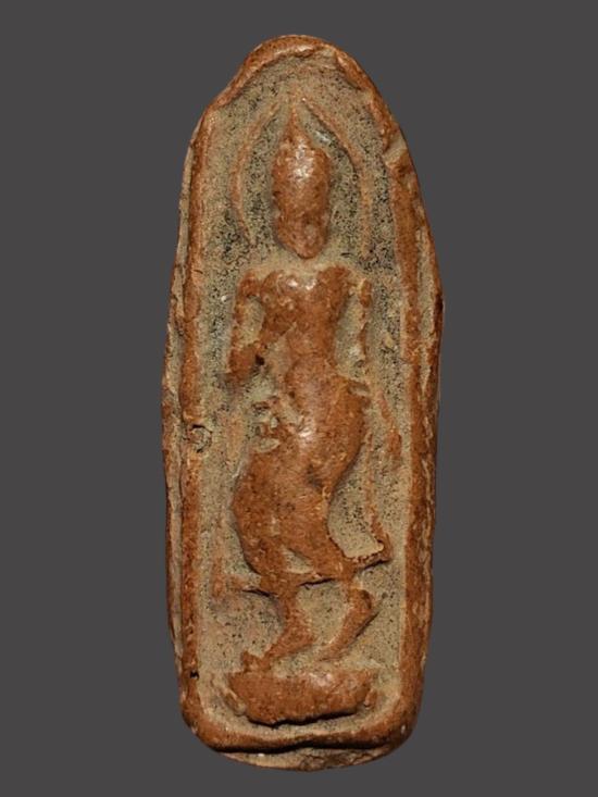 A8542.พระลีลา เนื้อดิน ไม่ทราบกรุ เคาะเดียวเเดง