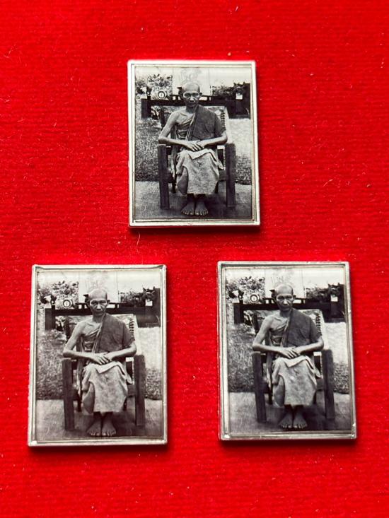 รูปถ่ายอัศวินขาปิ่นโต หลวงพ่อเกษม เขมโก จังหวัดลำปาง หลังอลูมิเนียม ด้านบนตอกโค๊ต โชคดี (1กระดาน 3 รูป) |