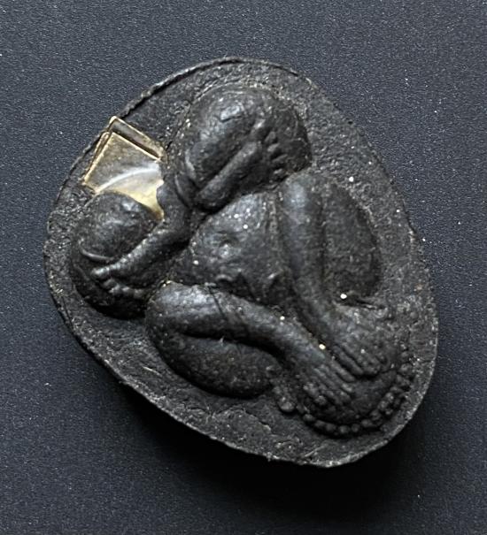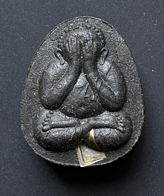 พระปิดตายันต์ดวงเล็ก ปี2523 สมเด็จพระญาณสังวร (เจริญ) วัดบวรนิเวศ_(เนื้อผงใบลานดำปลดหนี้)_มีเส้นเกศา_ตะกรุดเงิน_ |
