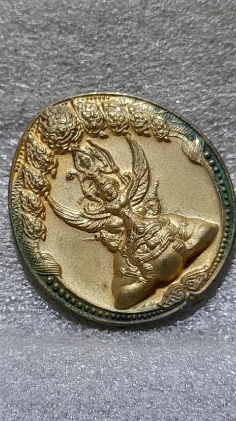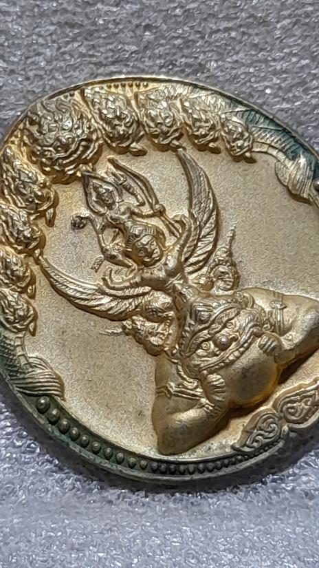 วัดใจเคาะเดียว............เหรียญนารายณ์ทรงครุฑประทับราหู เจ้าคุณธงชัย วัดไตรมิตร ปี48 กะไหล่ทองขัดเงาบางส่วน |