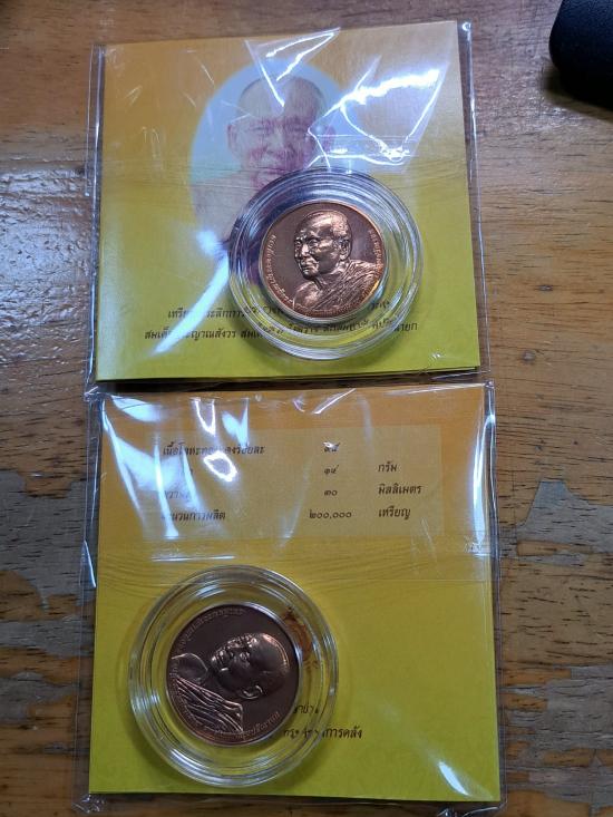 เหรียญที่ระลึกการพระราชพิธีพระราชทานเพลิงพระศพสมเด็จพระญาณสังวร สมเด็จพระสังฆราช สกลมหาสังฆปริณายก ปี 58 เนื้อทองแดง กรมธนารักษ์จัดสร้าง 2เหรียญ เคาะเดียว