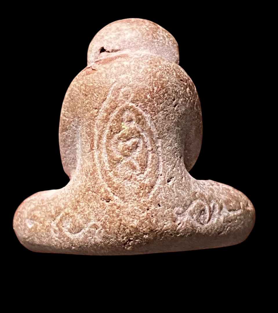 พระปิดตาเนื้อผง หลังยันต์ ใต้ฐานฝังตะกรุด ตอกหมายเลขครับ