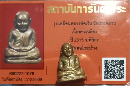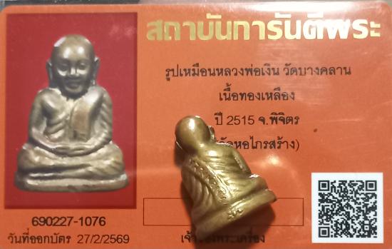 เคาะเดียวแดง+++รูปเหมือนหลวงพ่อเงิน วัดบางคลาน เนื้อทองเหลือง ปี 2515 จ.พิจิตร (วัดหอไกรสร้าง)พร้อมบัตรพระแท้การันตี