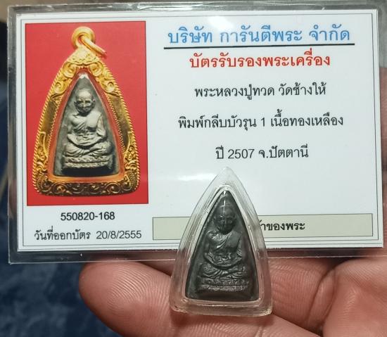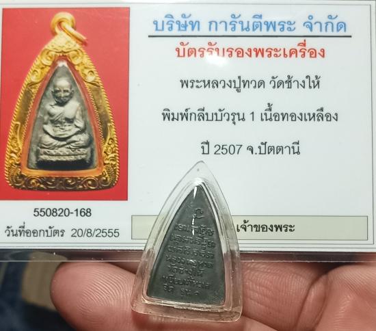 หลวงปู่ทวด วัดช้างให้ พิมพ์กลีบบัวรุ่น 1 เนื้อทองเหลืองปี 2507 สวยๆผิวปรอทเดิมๆ พร้อมบัตรรับรองพระแท้