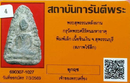 เคาะเดียว พระสุพรรณหลังผาน กรุวัดพระศรีรัตนมหาธาตุ พิมพ์เล็ก เนื้อชินเงิน จ.สุพรรณบุรี พร้อมบัตรรับรองจากจีพระ