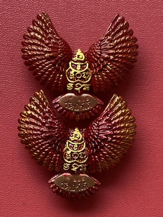 เคาะเดียวแดง หลวงปู่บุดดา รูปหล่อ รุ่นพญานกถึกทือ เนื้อ ทองแดงลงยา (2องค์) |