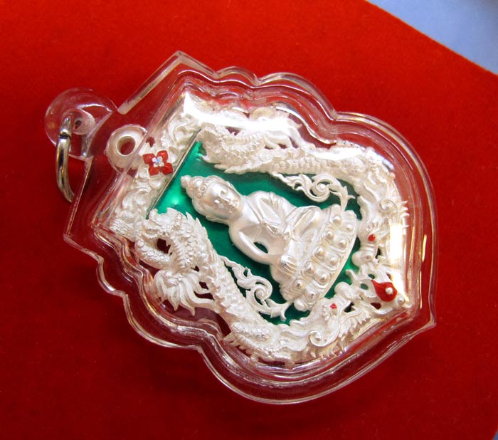 เนื้อเงินลงยาสีเขียวสภาพสวยเลี่ยมรักษาผิวพร้อมกล่องเดิม+บัตรประจำองค์พระ หมายเลข 80