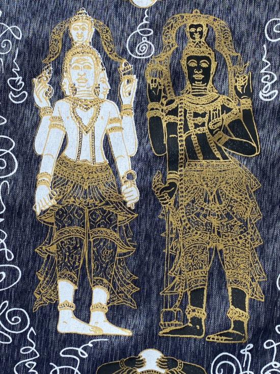 เคาะเดียวแดง ผ้ายันต์ พระพรหม พระนารายณ์ มิ่งมงคล รุ่นมงคลจักวาล ขนาด40/40ซม มีตราประทับ-มีรันเลข สีดำ |