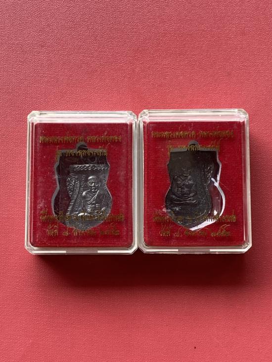 เคาะเดียวแดง อาจารย์ทองรุ่นทองฉลองเจดีย์ 2องค์ พิมพ์เลื่อน เนื้อทองแดงรมดำ |
