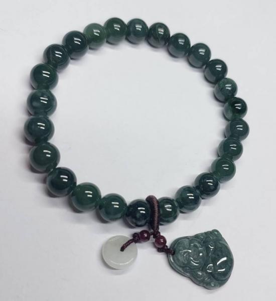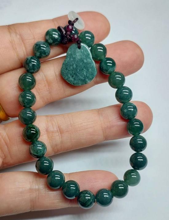 ***วัดใจ***สร้อยข้อมือ หยกจักรพรรดิ์ พร้อมจี้ เม็ด 8 มิล สวยๆ |