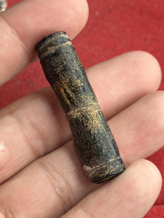ตะกรุดหนัง ลงรักดำทาทอง ขนาด 2 นิ้ว ไม่ทราบที่
