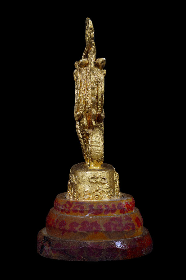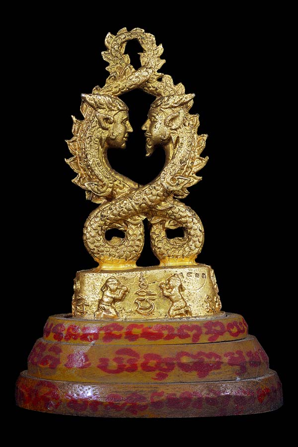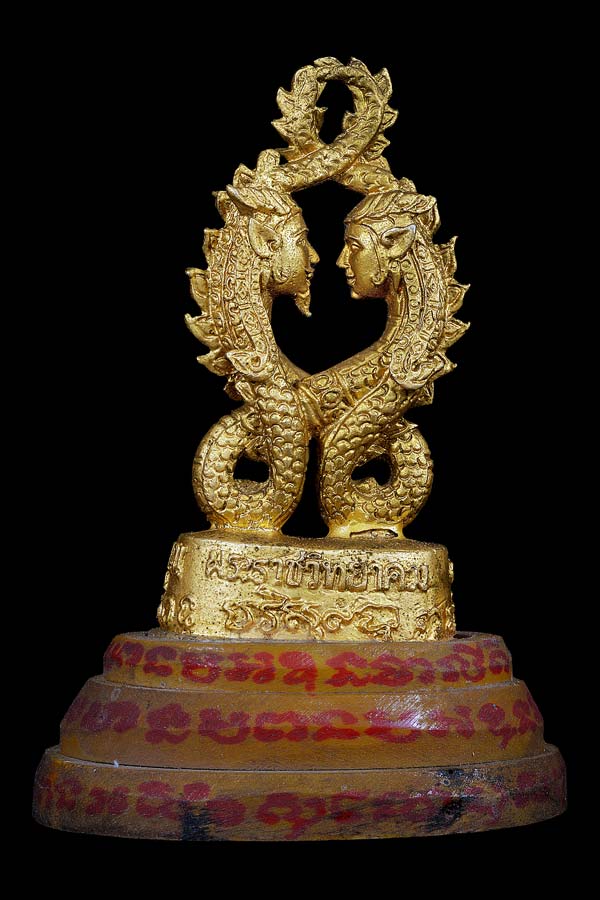 (1).นาคเกี้ยว ( ตั้งบูชา ) พร้อมฐาน เนื้อโลหะพ่นทอง ( รันหมายเลข ) 2080 องค์