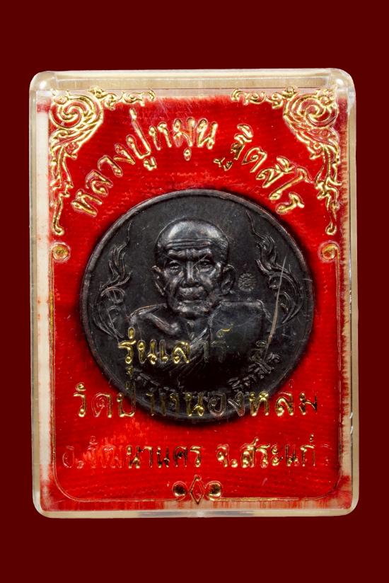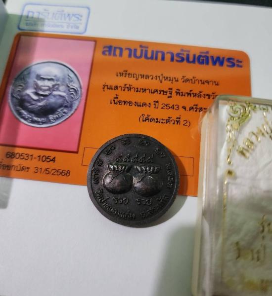 เหรียญขวัญถุง รวย รวย หลวงปู่หมุน ฐิตสีโล วัดบ้านจาน เนื้อทองแดง ปี2543 พร้อมบัตรรับรอง