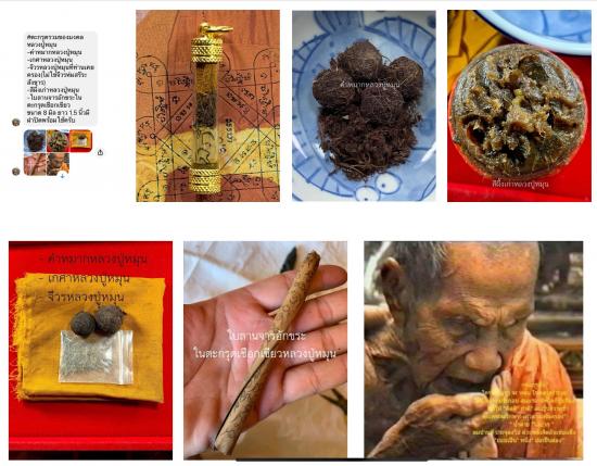 คำหมากหลวงปู่หมุน เกศา จีวร สีผึ้งเก่า ใบลานจารอักขระของเก่า
