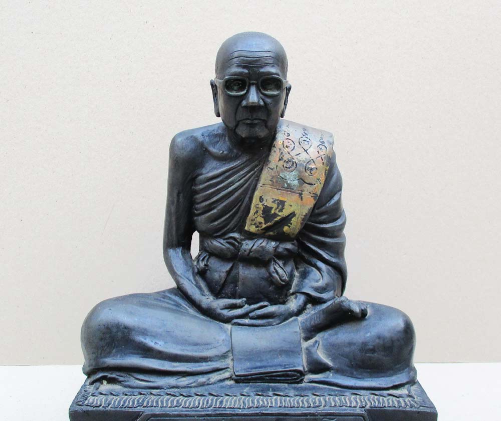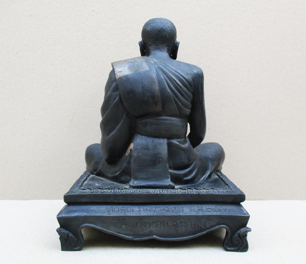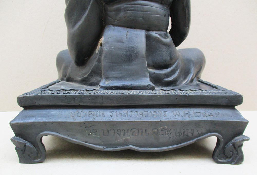 พระบูชาหลวงพ่อด่วน ถามวโร วัดบางนอน จ.ระนอง บูชาคุณ รุ่นสร้า งวิหาร พ.ศ.2551 หน้าตัก 9 นิ้ว เนื้อโลหะรมดำผิวแห้งหิ้ง อุดป ูนฝังวัตถุมงคล สภาพสวย !!