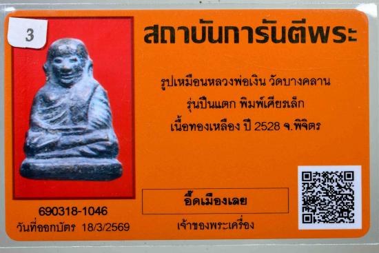 คัดสวย พระรูปหล่อ หลวงพ่อเงิน วัดบางคลาน รุ่นปืนแตก พิมพ์เศียรเล็ก เนื้อทองเหลือง ปี พ.ศ.2528 พร้อมบัตรรับรอง