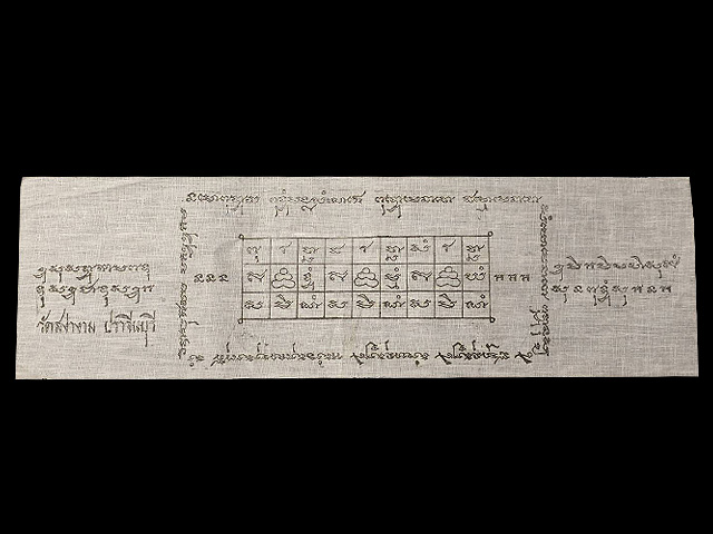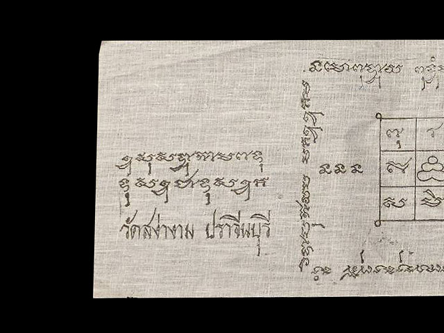 ***ผ้ายันต์กันฟ้า ขนาด 6x16 นิ้ว หลวงพ่อผิว วัดสง่างาม จ.ปราจีนบุรี ปี 2515***