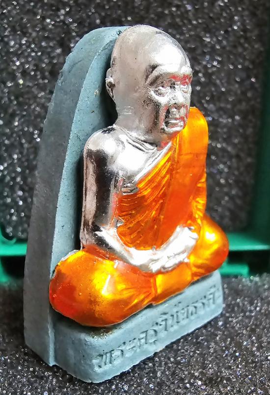 เนื้อผงน้ำมันเทอร์คอยส์ หน้ากากชุบเงิน ลงยาจีวร ตระกรุดเงิน 1 ดอก