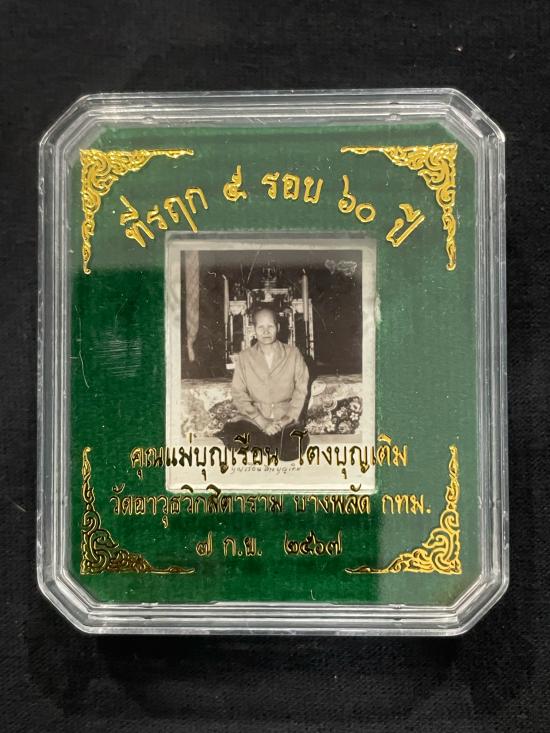 ภาพถ่ายคุณแม่บุญเรือนอัดกระจกภาพสีซีเปีย วัดอาวุธวิกสิตาราม ขนาด 1 นิ้ว รุ่น ที่รฤก 5 รอบ 60 ปี พิธีใหญ่ ปี 2567 ภาพถ่ายล้างอัดด้วยกรรมวิธีโบราณ คมชัดสูง ตอกโค๊ตพุทโธ จัดสร้าง 500 บาน(งานช่างเดียวกับที่ทำภาพถ่ายของอ.ดิเรก วัดหนองทราย) |