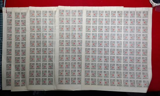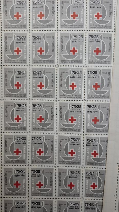 แสตมป์ที่ระลึกครบรอบ 100 ปีการกาชาดสากล พิมพ์ทับ พ.ศ. 2520 ของประเทศไทย ทั้งหมด5แผ่นเต็ม