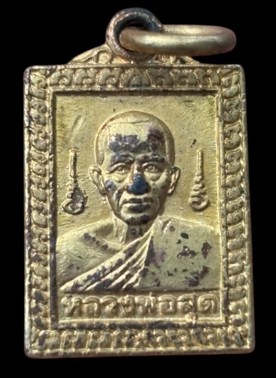 เหรียญ แสตมป์เล็ก หลวงพ่อสุด วัดกาหลง ปี 20 กระไหล่ทอง