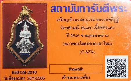 เหรียญท้าวเวสสุวรรณ ( รุ่นแรก ) หลวงพ่ออิฎฐ์ วัดจุฬามณี ปี 2545 เลื่อมทองสั่งทำหนาๆ เปอร์เซ็นต์สูง 82% (ประมาณ 5.34 กรัม) พร้อมบัตรรับรองครับ