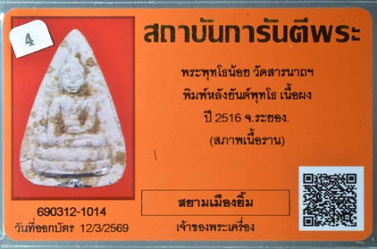 พระพุทโธน้อย รุ่น2 พิมพ์หลังยันต์พุทโธ ปี 2516 วัดสารนาถธรรมาราม จ.ระยอง เคาะเดียว |