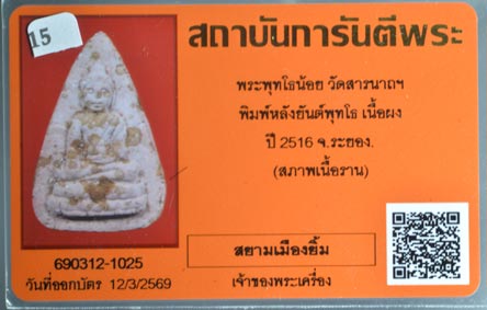 พระพุทโธน้อย รุ่น2 พิมพ์หลังยันต์พุทโธ ปี 2516 วัดสารนาถธรรมาราม จ.ระยอง เคาะเดียว |