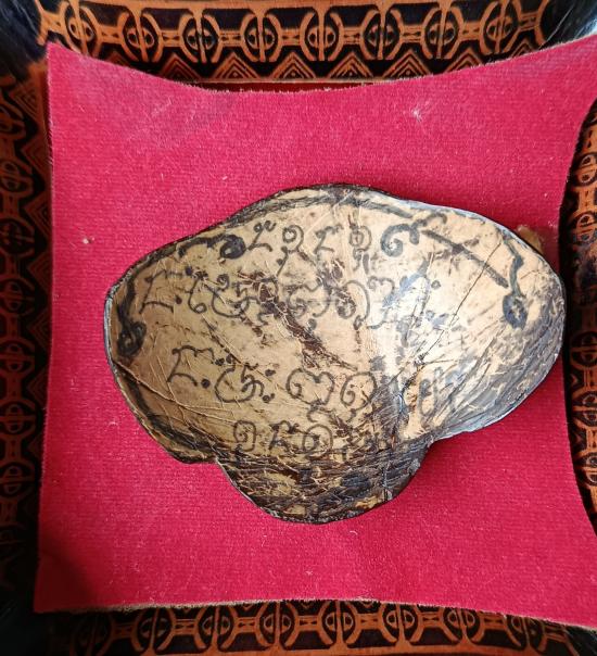 กะลาแกะพระราหูหลวงพ่อปิ่นวัดศรีษะทองจารหมึกลายมือชัดเจน เปิดขาดทุนตามสภาพครับ รับประกันตามกฏครับ