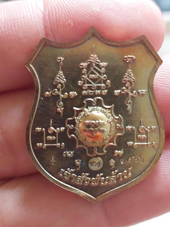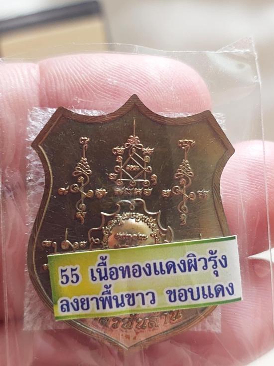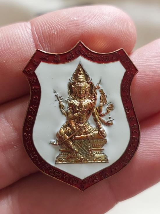 วัดใจเคาะเดียงแดง เหรียญท้าวมหาพรหม เจ้าสัวพันล้าน บอยท่าพระจันทร์ เนื้อทองแดงผิวรุ้ง ลงยาขาว ขอบแดง เลข 1866