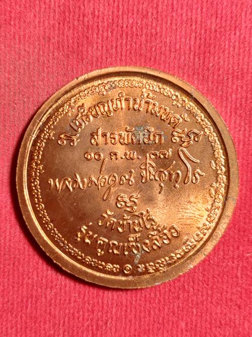 เหรียญทำน้ำมนต์ สารพัดนึก หลวงพ่อคูณ ปริสุทโธ รุ่น คูณเซ้งลี้ฮ้อ ออกวัดบ้านไร่ ปี 2537 เนื้อ ทองแดง สภาพสวย เคาะเดียวแดง