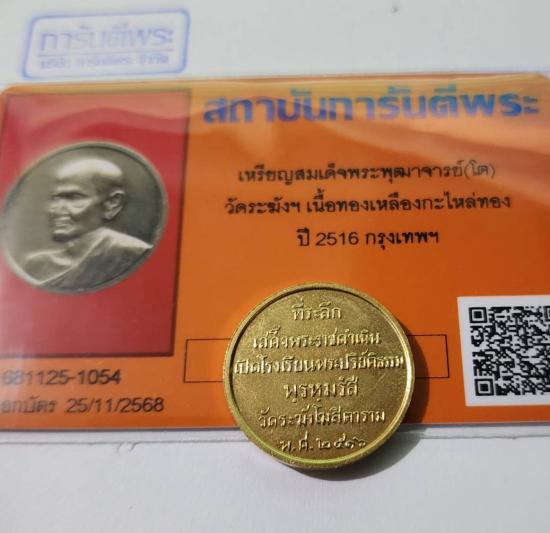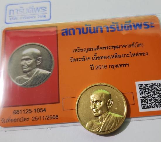 เหรียญสมเด็จพระพุฒาจารย์(โต) วัดระฆังฯ เนื้อทองเหลืองกะไหล่ทอง ปี 2516 กรุงเทพฯ พร้อมบัตรรับรองอุ่นใจไม่ต้องวัดใจสภาพพระแท้