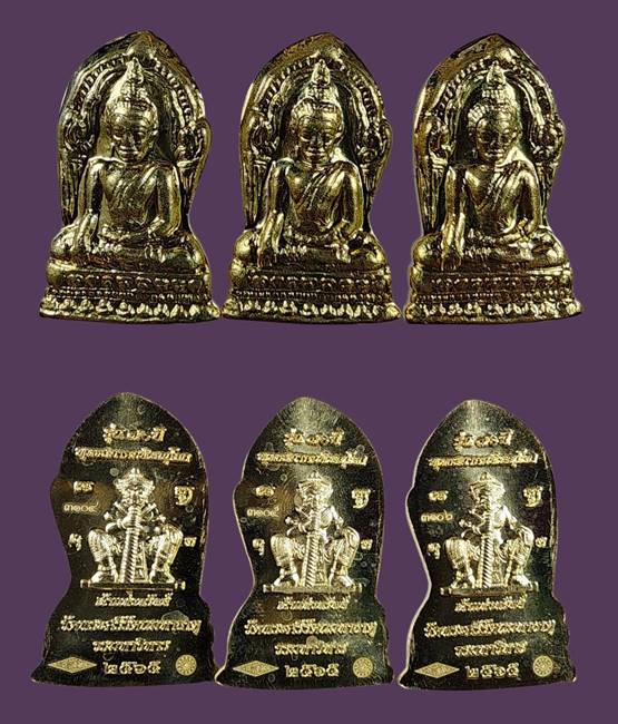 ( 3 องค์ ) พระพุทธชินราชใบเสมา รุ่น 70 ปีพุทธสมาคม เนื้อสัมฤทธิ์แดง พิมพ์ใหญ่ วัดพระศรีรัตนมหาธาตุจังหวัดพิษณุโลก สภาพสวยเดิมๆครับ