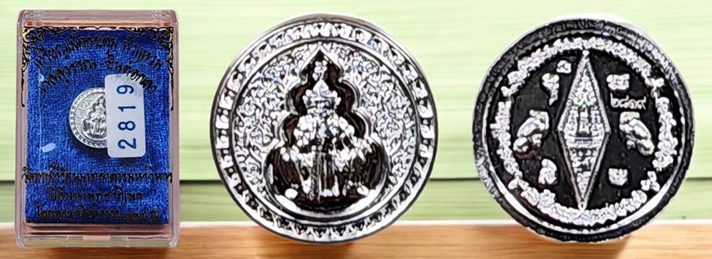 เป็นเหรียญทรงกลม มีองค์เทวรูปท้าวเวสสุวรรณ เป็นประธานกลางเหรียญ พร้อมด้วย อักษรดี มงคลพระพุทธชินราช และ ยันต์ นะเศรษฐี 2 ข้าง ในลายกนกเครือเถา อันงดงามยิ่ง ขอบเหรียญ เป็น บัวล้อม 32 กลีบ
