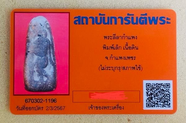 พระลีลากำแพง พิมพ์เล็กเนื้อดิน ดูง่ายเนื้อจัด "มึงมีกูไว้ไม่จน"ขนาดพระโดยประมาณ สูง 3.3 cm, ฐานกว้าง 1.4 cm. หนา 0.8 cm. ##