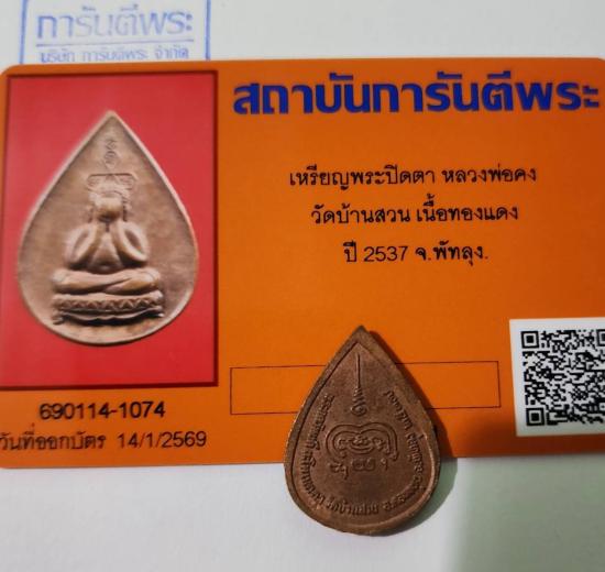 ((วัตถุมงคลสาย "เขาอ้อ"ขลัง ๆ)) เหรียญพระปิดตา หลวงพ่อคง วัดบ้านสวน เนื้อทองแดง ปี 2537 พร้อมบัตรรับรองอุ่นใจไม่ต้องวัดใจสภาพพระแท้