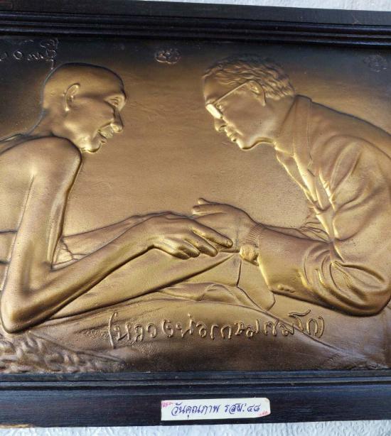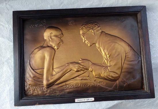 ภาพปฏิมากรรมปูนปั้นหลวงพ่อเกษม เขมโก และในหลวง ร.9 ขนาดรวมกรอบ 17.5 x 12นิ้ว