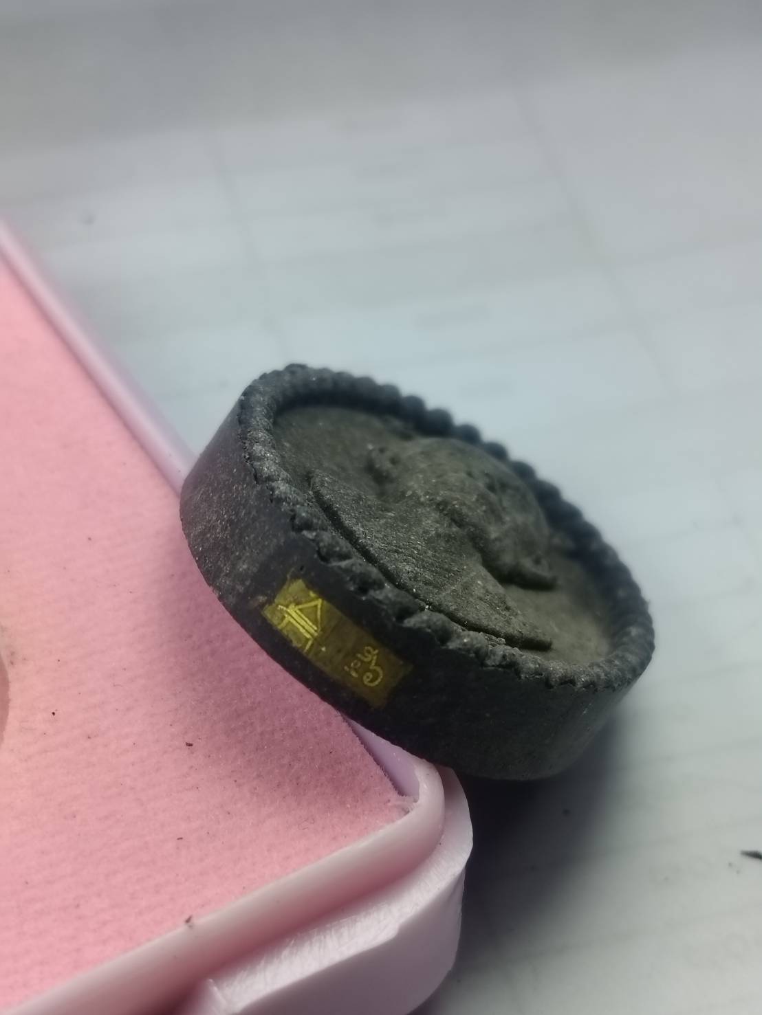 พระผงดวง รุ่น ดวงเศรษฐี แจกในพิธี เนื้อ ใบลานแช่น้ำมนต์ สร้าง 100 องค์ หมายเลข 56 หลวงปู่โต๊ะ วัดถ้ำสิงโตทอง ราชบุรี มวลสารและพิธีดีมาก มีกล่องเดิมๆ