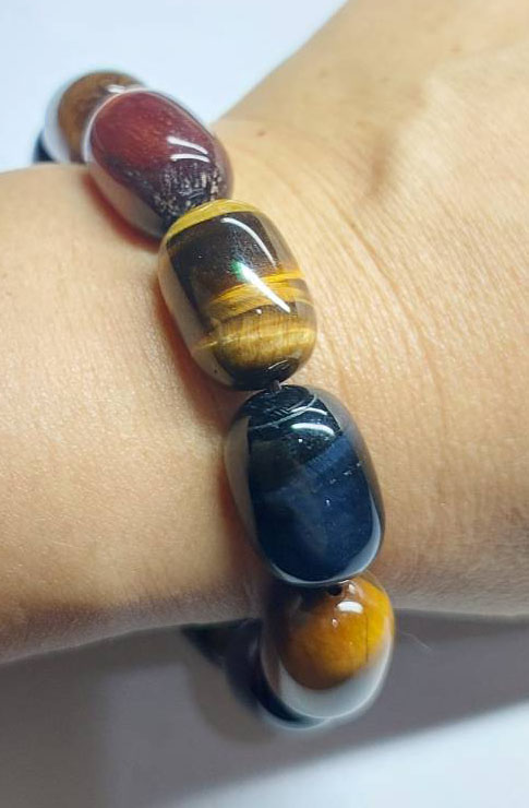 ***วัดใจ***สร้อยข้อหินไทเกอร์อาย 3 ทหารเสือ เม็ดใหญ่