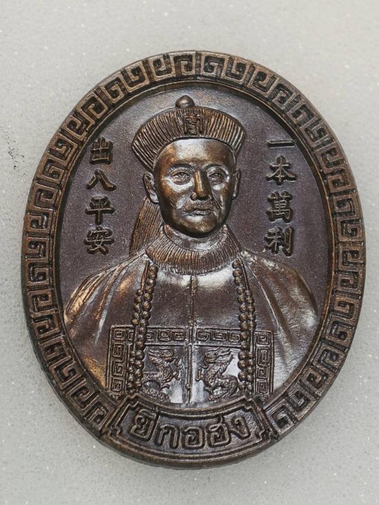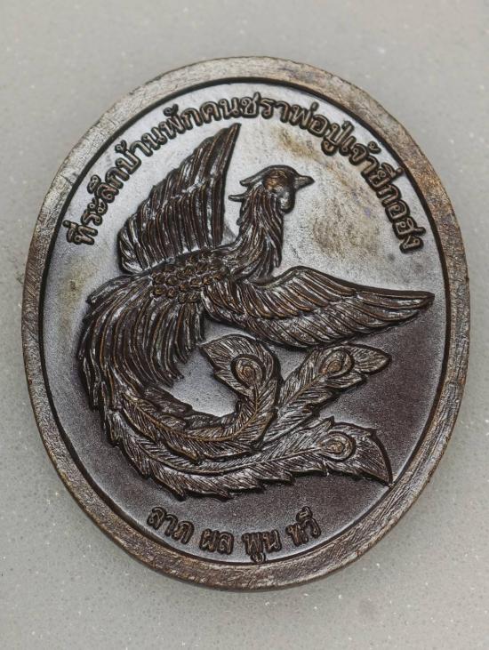 เหรียญพ่อปู่เจ้ายี่กอฮง ที่ระลึกบ้านพักคนชราพ่อปู่เจ้ายี่กอฮง ลาภผล พูนทวี เนื้อทองแดงรมดำมันปู สภาพสวย
