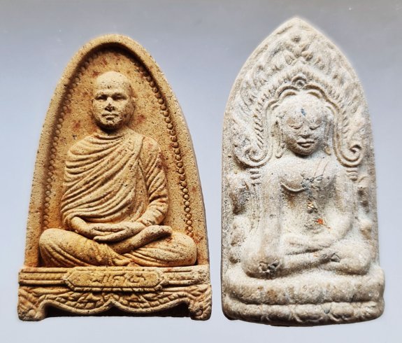 << วัดใจ >> ชุดที่ 1 พระผงรูปเหมือนพิมพ์เตารีดใหญ่ เนื้อสีเหลือง พระอาจารย์เปลี่ยน หลังลายเซ็น เกศา(เยอะ) + พระจามเทวีซุ้มเรือนแก้ว (ลือโขง) เนื้อสีขาว โรยผงมวลสารด้านหน้า สภาพสวยพร้อมกล่องเดิม |