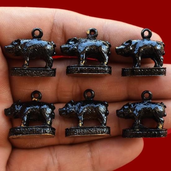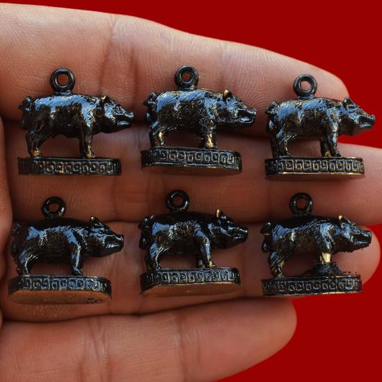ชุด 6 องค์...หมูเจ้าทรัพย์ เนื้อโลหะ ปี 2556 หลวงพ่อผิน วัดโคกสว่าง จ.ปราจีนบุรี พร้อมซองรูปจากวัด สภาพพระตามรูปที่ลงทุกประการ (ขนาดยาว 2.1 ซม.)