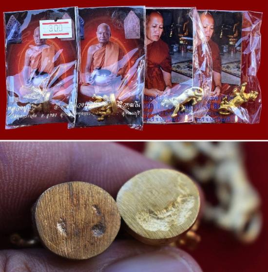 ชุด 4 องค์...พระพิฆเณศสมปรารถนา เนื้อทองผสม ปี 2550 หลวงปู่นิเวศน์ วัดทุ่งกระเจ็ด + พยัคฆ์บารมี เนื้อทองเหลือง ปี 2555 หลวงพ่อขันตี วัดหลวงบดินทร์เดชา พร้อมซองรูปเดิมจากวัด (ขนาดประมาณ 2 x 1.4 ซม.) + (พยัคฆ์ ขนาดยาวจากหัวถึงหางประมาณ 2.8 ซม.)