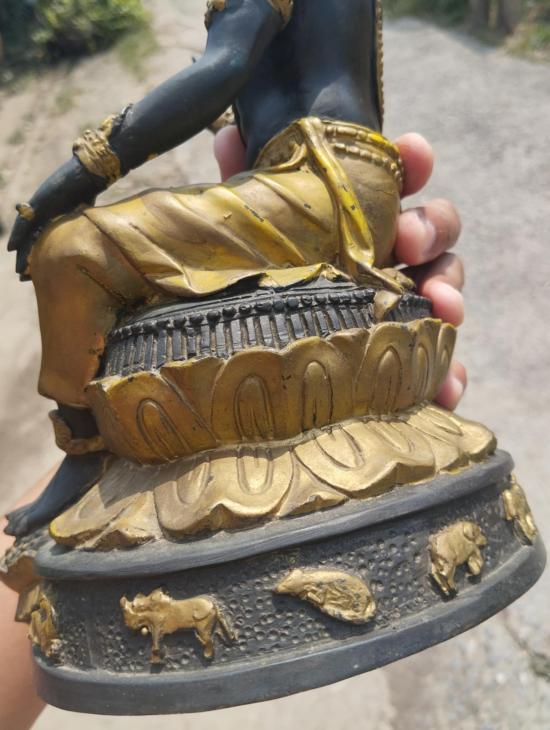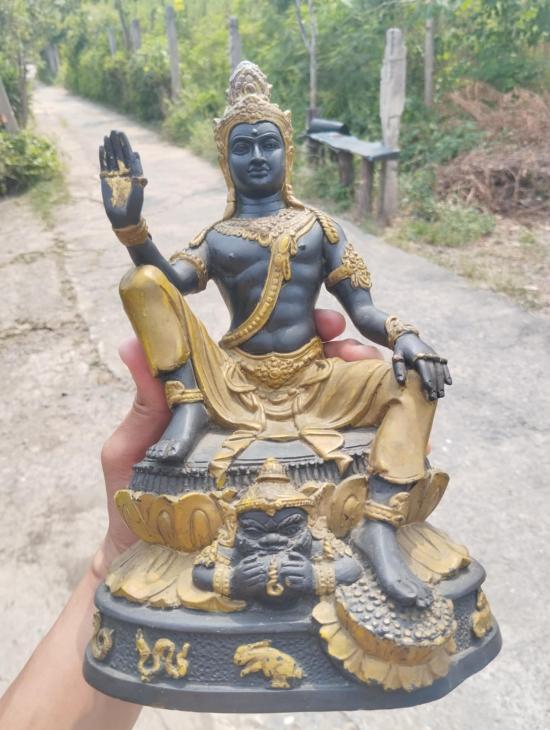 ชื่อพระเครื่อง พระบูชา องค์จตุคาม รามเทพ รุ่น.ราชามหาลาภ เนี้อโลหะ ลงสี ฐาน 7 นิ้ว สูง 12 นิ้ว สวยมากเคาะเดียวเเดง