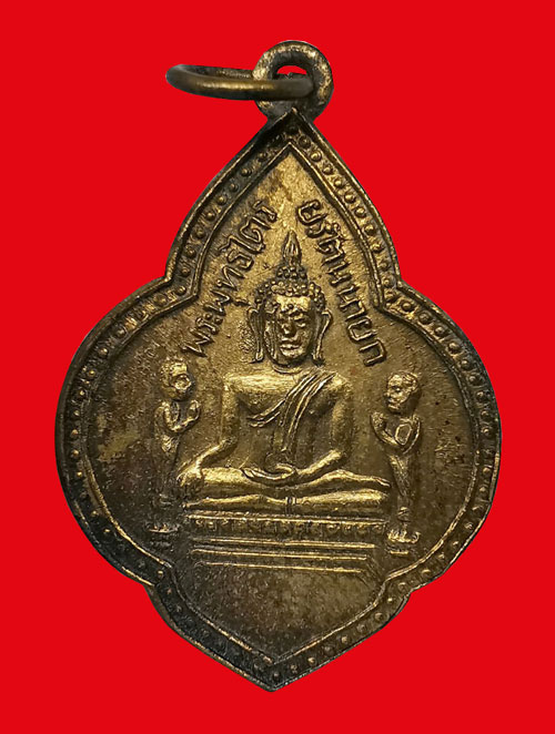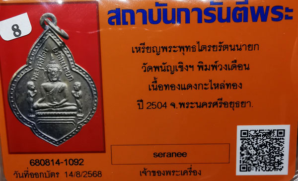 เหรียญพระพุทธไตรยรัตนนายก วัดพนัญเชิงฯ พิมพ์หลังวงเดือน เนื้อทองแดงกะไหล่ทอง ห่วงเดิม ปี2504 จ.พระนครศรีอยุธยา + บัตรG-pra สภาพเดิมค่ะ