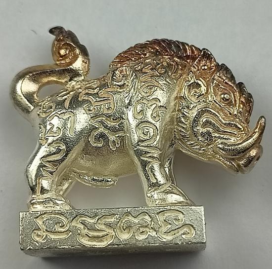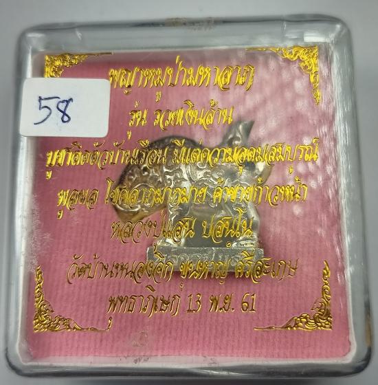 พญาหมูป่ามหาลาภ รุ่น รวยเงินล้าน หลวงปู่แสน วัดบ้านหนองจิก ปี 61 เนื้อเงิน เบอร์ 58 พร้อมกล่องเดิมครับ (น้ำหนัก 23.99 กรัม)