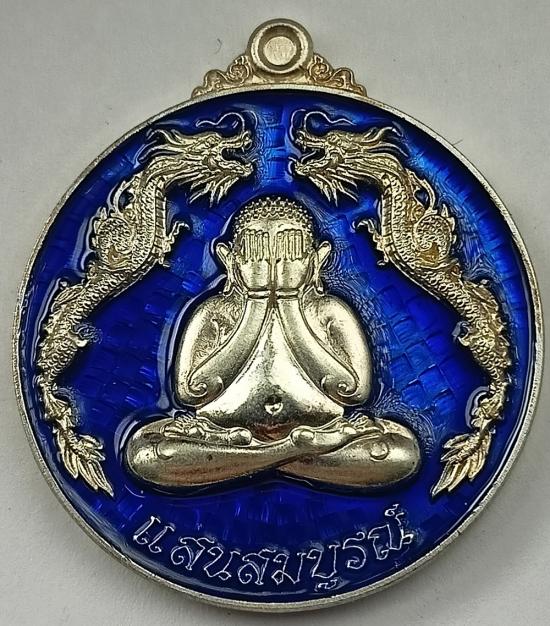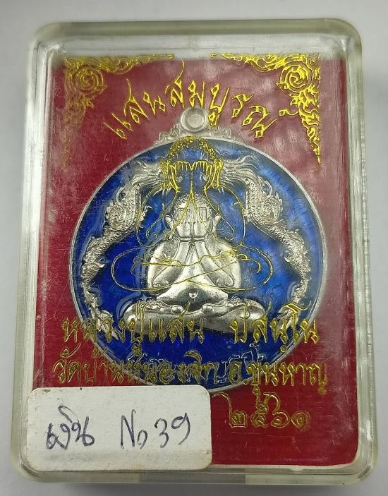 เหรียญพระปิดตามังกรคู่ แสนสมบูรณ์ หลวงปู่แสน วัดบ้านหนองจิก (ปี61) เนื้อเงินลงยา เบอร์ 39 พร้อมกล่องเดิมครับ (เหรียญหนัก 16.40 กรัม )
